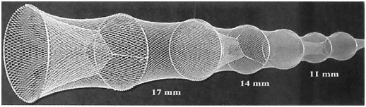 Двойные внутренние мережи (классификация сетных материалов по ЕС: Typ 3 Type 97/7 Nylon-Monofil), диаметр обручей, изготовленных из нержавеющей стали, примерно 55 cм– 50 cм – 45 cм - 40 см – 35 см – 30 см – 30 см; длина крыла внутренней мережи - 8 м, цвет сетного полотна - зеленый, 2 горла; общая длина крыла и двух мереж составляет 12 м.