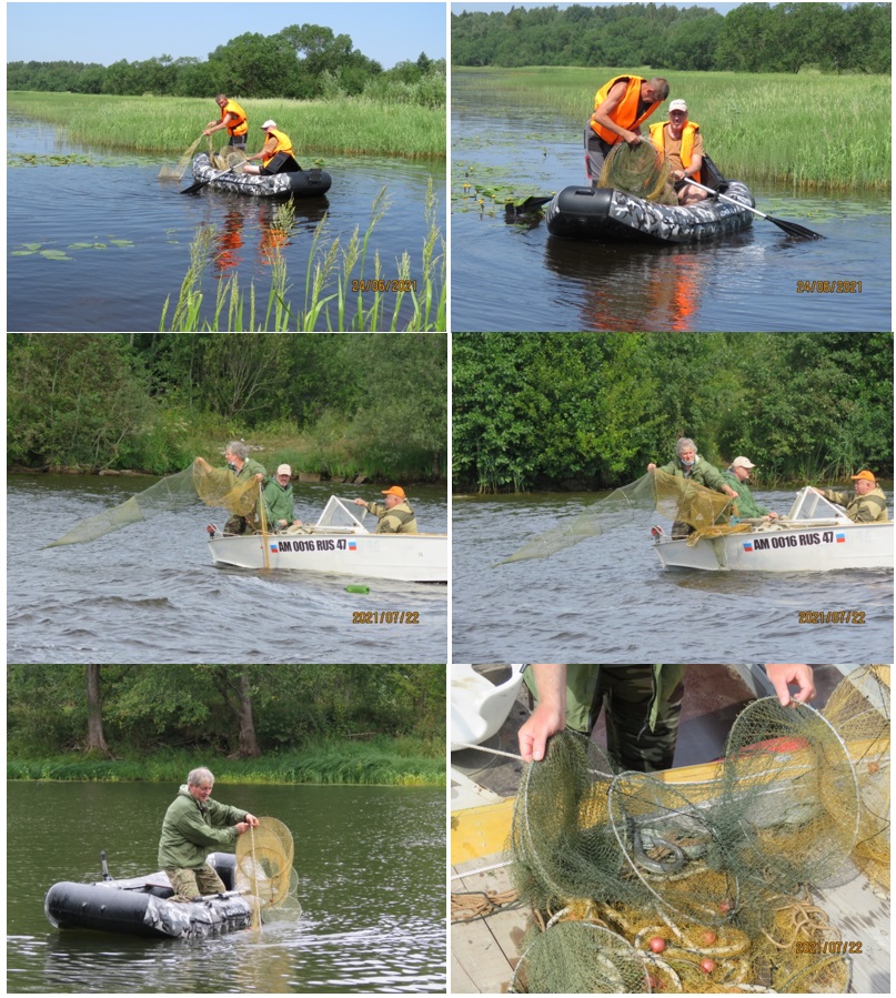 Полевые работы в 6-ой этап выполнения проекта проводились на Чудском озере и реке Нарве в границах Ленинградской и Псковской областей. За сентябрь – октябрь 2021 г. система мереж для поимки угря устанавливалась на 10 новых местах лова, несколько мест повторяли локации ранее проведенныхобловов в более ранние этапы проекта.