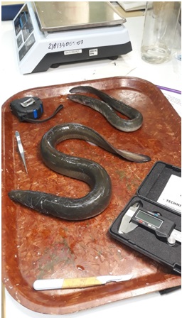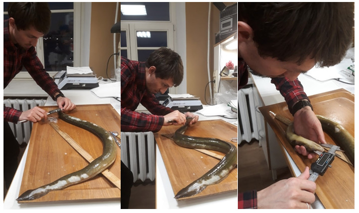 Всего было поймано три экземпляра угря, которые позднее подверглись биологическому анализу в соответствии с имеющейся методикой. Пробы отолитов были подготовлены для последующей передачи эстонским партнерам.