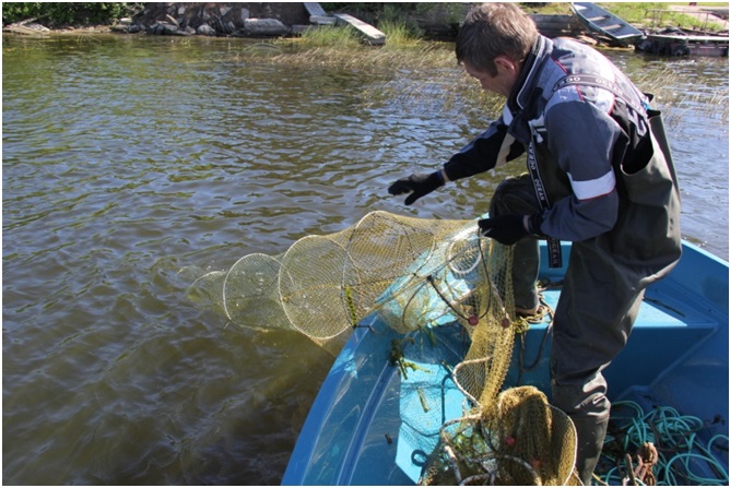 The first period of the project was focused on preparing for and carrying out field works. The preparation of field works accounted for implementing procurements for obtaining the fishing gear and working out a field work schedule. These activities were supported by internal partner meetings and one project partner meeting which provided invaluable information on how the fishing gear is constructed and prepared both partners for suitable sampling spots during field works. Estonian partner started with field works in the end of May while Russian partner started in August. This delay in the starting period for field works was due to not having the fishing gear ready in time for Russian partner. However a training day was held in beginning of August for Russian partners on Narva Reservoir to know how to operate the gear in field work conditions. All these activities resulted in 17 sampling spots fished for 60 fishing days in total and 39 eel specimens caught for analyses during period 1.