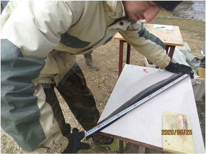 The third project period start happened to fall at the same time when the COVID-19 restrictions were put in place both by the Estonian and Russian Governments. A school seminar was planned in Räpina School of Horticulture on 18th of March which had to be postponed. Due to the situation in local schools all plans to visit any other schools in the area were cancelled. As public meetings were not allowed we had to postpone the meetings with fishermen to the spring of 2021. Internal meetings per partner were held at least once a month.The fieldworks started on 23 May on the southern part of Lake Peipsi (near Laaksaareharbour). During the May/June and august field-works, 22 eels were caught. Russian partners fieldworks consist of fishing with the enclosure fyke net system for 3 weeks each month, one week at each sampling spot. The field works during the third period of the project lasted from May to August. In total, during this period the enclosure fyke net system was installed at 9 points in the Russian side of the Narva River basin and a total of 2 eels were caught using this fishing gear. All fish caught were subjected to laboratory analysis. The extracted otoliths were prepared for transferring to the Estonian project partner for further microchemical analysis at the Estonian University of Life Sciences.