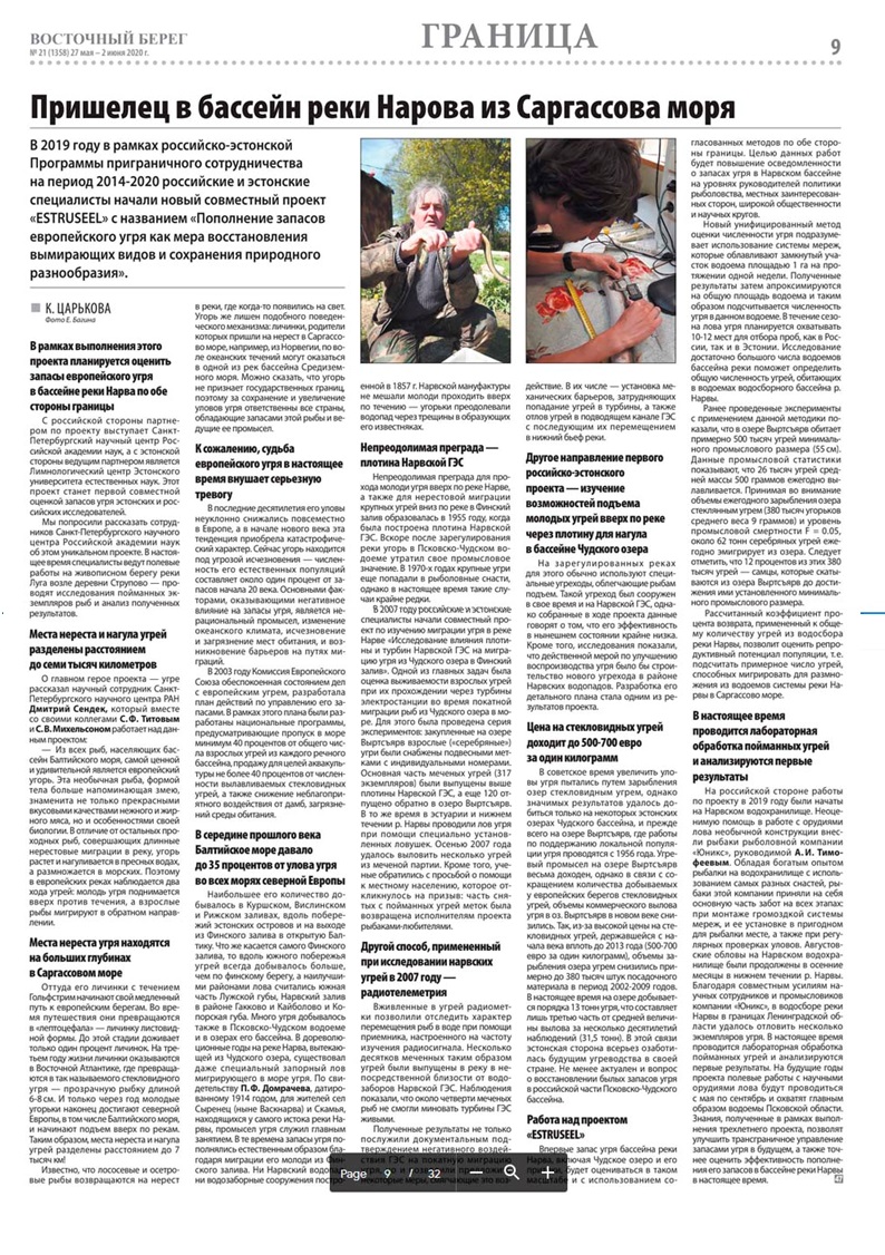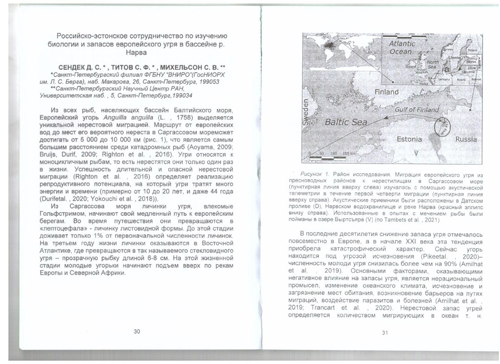 In December 2021, a publication on Russian-Estonian cooperation in the field of eel research in the Narva River basin was published in the scientific collection of the Department of Ichthyology and Hydrobiology of St. Petersburg University.