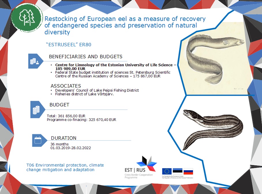 Проект будет направлен на оценку запасов европейского угря во всем бассейне реки Нарва (RBD), чтобы внести ценный вклад в общеевропейскую оценку запасов европейского угря.