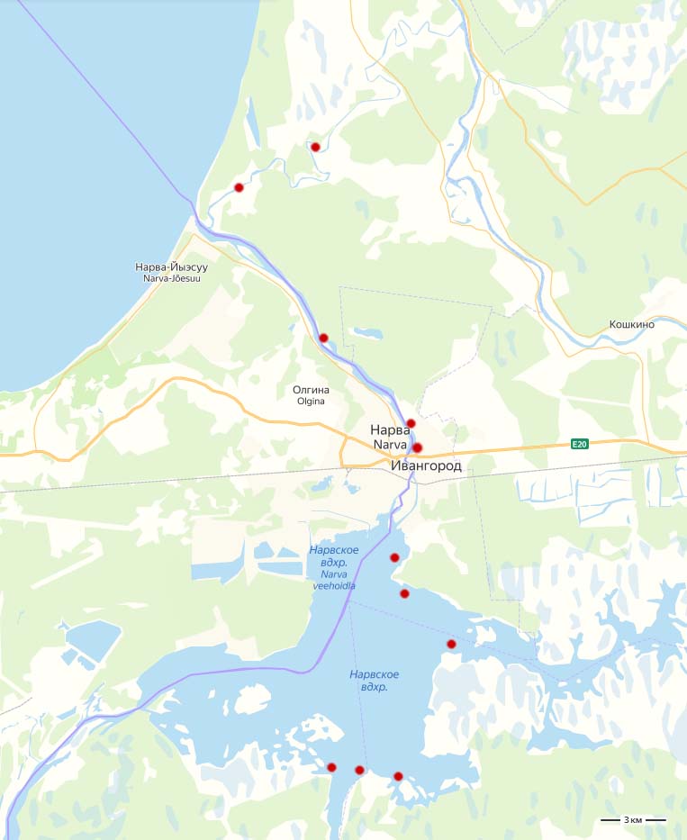 В 2020 году из-за сложной эпидемиологической ситуацией в связи с пандемией COVID-19, полевые работы на водоемах Псковской области было решено заменить работами в границах Ленинградской области. С началом полевого сезона в третий период выполнения проекта в течении мая, июня, июля и августа были организованы обловы на Нарвском водохранилище и в нижней части реки Нарвы (см. карту). На окончание третьего периода работ было поймано два экземпляра угря. Полевой сезон 2020 года продолжится и в четвертый период проекта, который по плану должен завершиться в конце сентября.