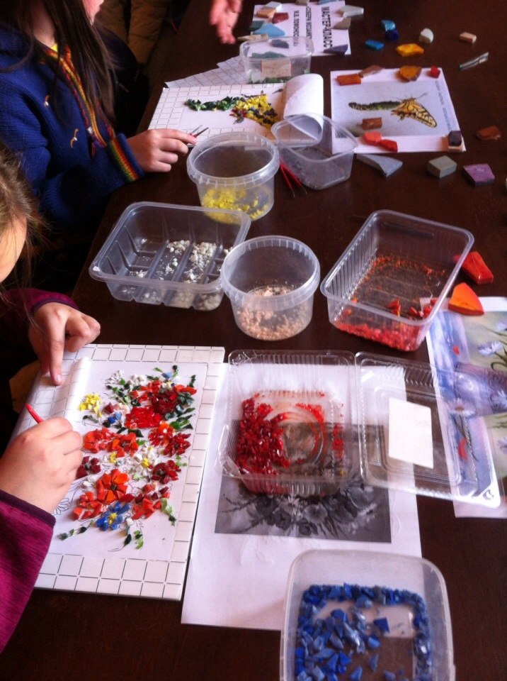 Для детей и взрослых был проведен мастер-класс по работе со смальтой "Собери мозаику как у М.В. Ломоносова".