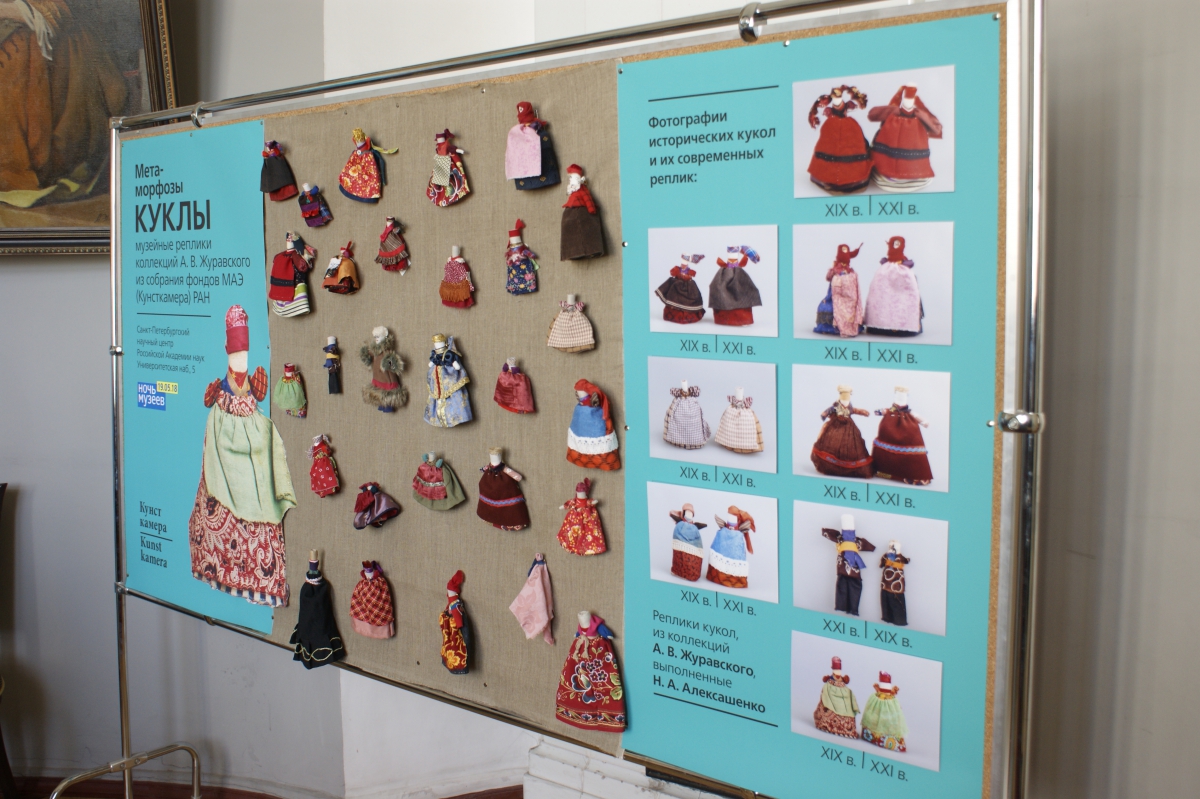 - Особый интерес вызывал Музей антропологии и этнографии им. Петра Великого (Кунсткамера), представивший фотовыставку «Текстильные куклы, собранные А.В. Журавским в коллекции МАЭ РАН», рассказал о коллекции игрушек и самом их исследователе, а для всех желающих был проведен мастер-класс по изготовлению куклы.