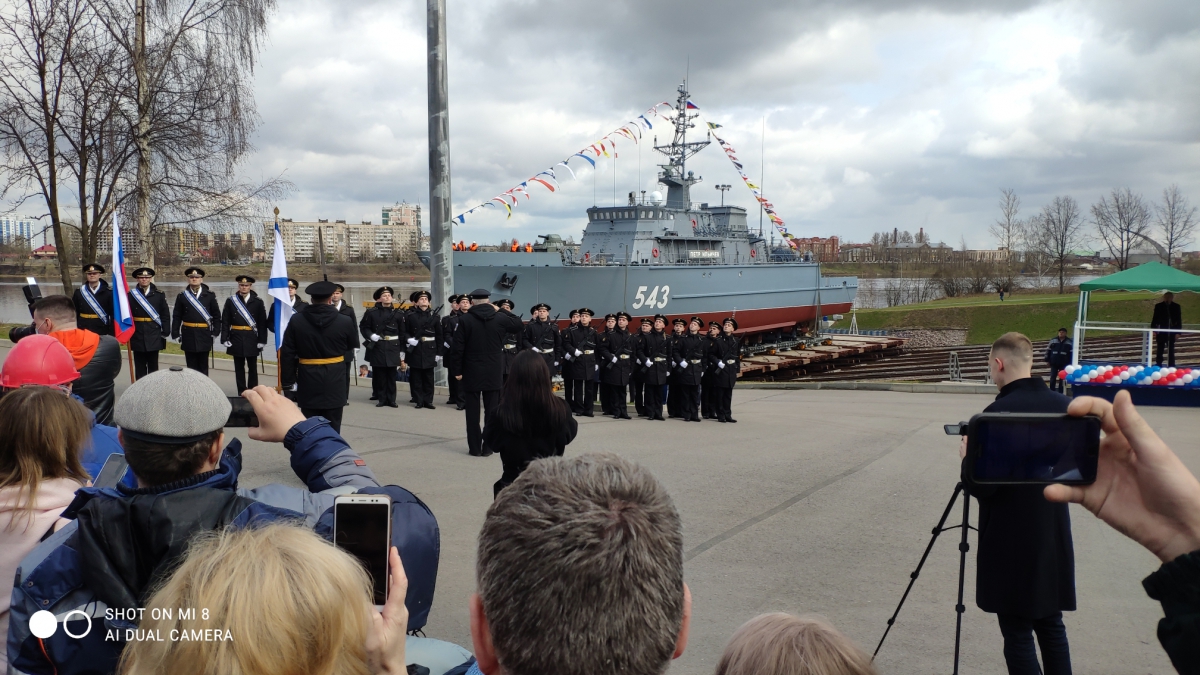 «Мы спускаем новый корабль... Корабли этого проекта уже хорошо показали себя в море, они хорошо управляются, обладают большой живучестью. Серия будет продолжать-ся... Надеюсь, что корабли будут сдаваться вовремя с высоким качеством», – сказал на це-ремонии главнокомандующий ВМФ России адмирал Николай Евменов.