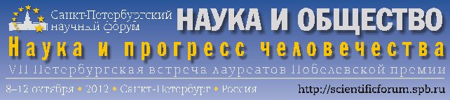 Санкт-Петербургский научный форум «Наука и общество» — VII Петербургская встреча лауреатов Нобелевской премии на тему: «Наука и прогресс человечества» состоится 8–12 октября 2012 года в Санкт-Петербургском научном центре Российской академии наук и Санкт-Петербургском академическом университете — научно-образовательном центре нанотехнологий Российской академии наук.