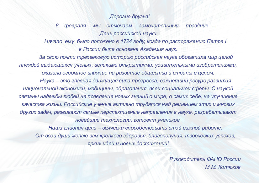 Поздравление ФАНО с Днем российской науки